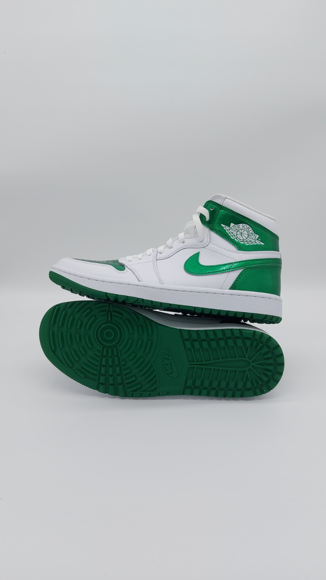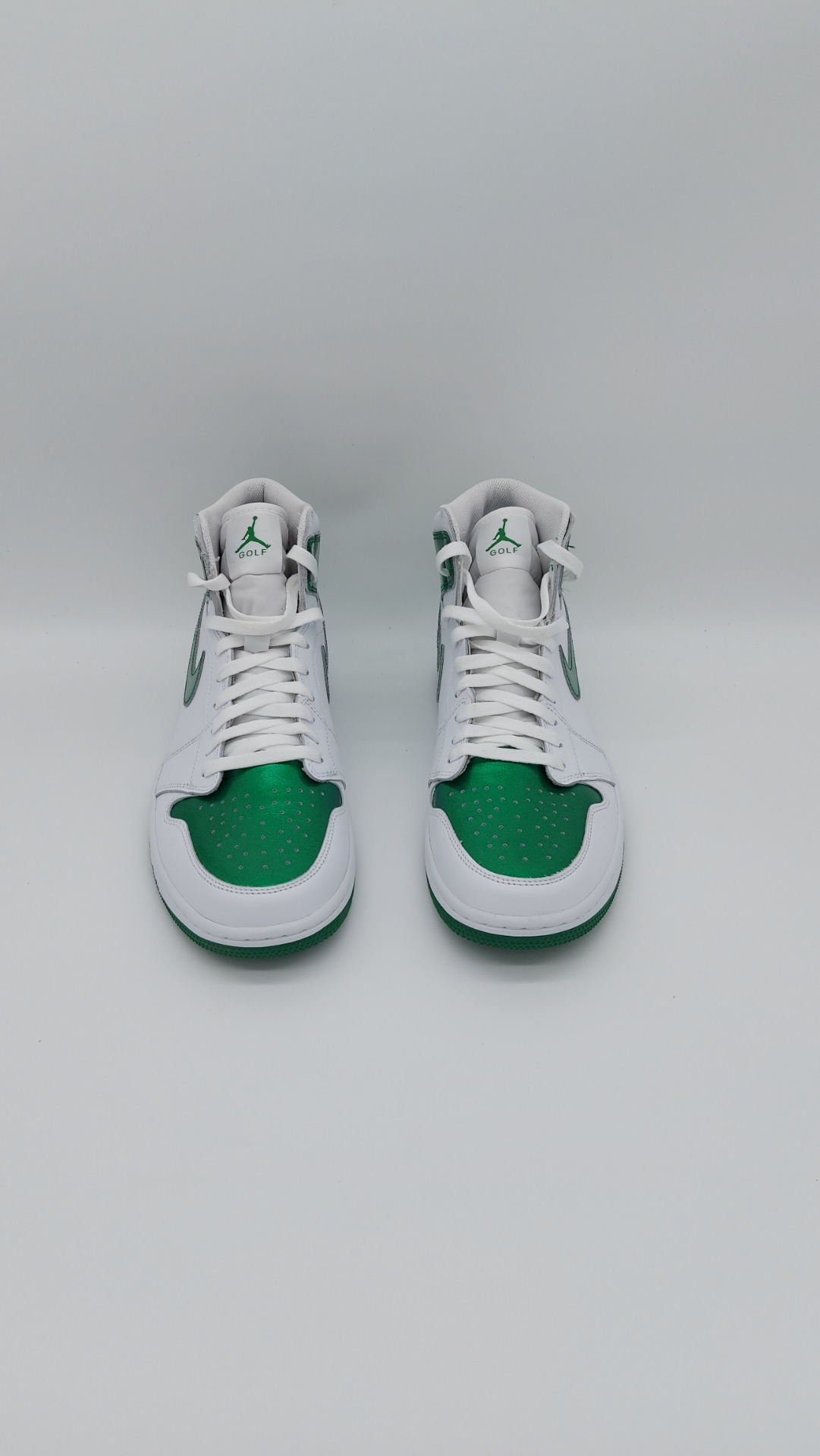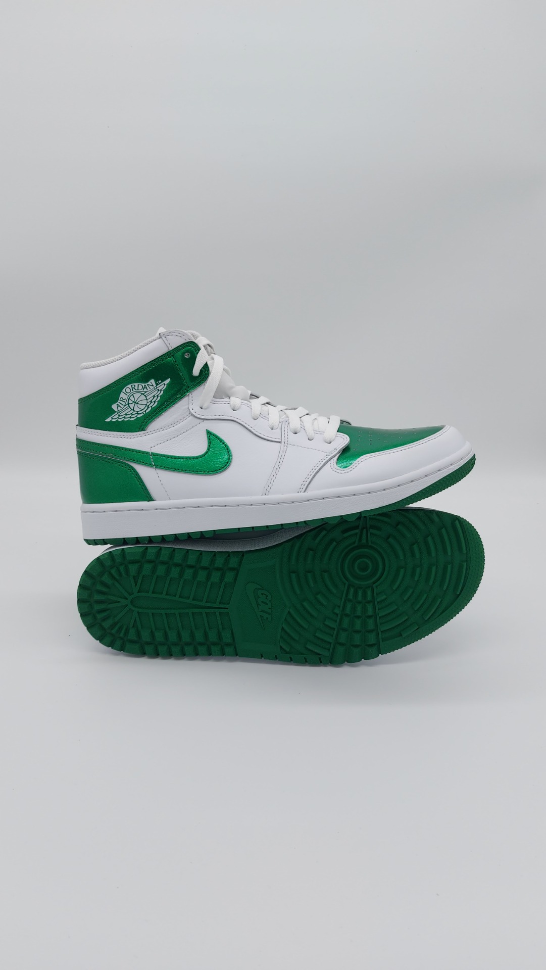 Fans van de Jordan 1 opgelet! De Jordan brand is weer met een schoen gekomen en wij hebben hem voor jullie! De Jordan 1 GOLF is een pracht exemplaar van wat een Jordan moet zijn. Met zijn robuuste bouw en sterke ondersteuning is deze schoen perfect voor het overnemen van de golfbaan. De schoen is opgebouwd met prachtige kleuren. Het mooie standaard witte met het prachtige gloeiende groen en het strak genaaide leer brengt deze schoen helemaal tot een.