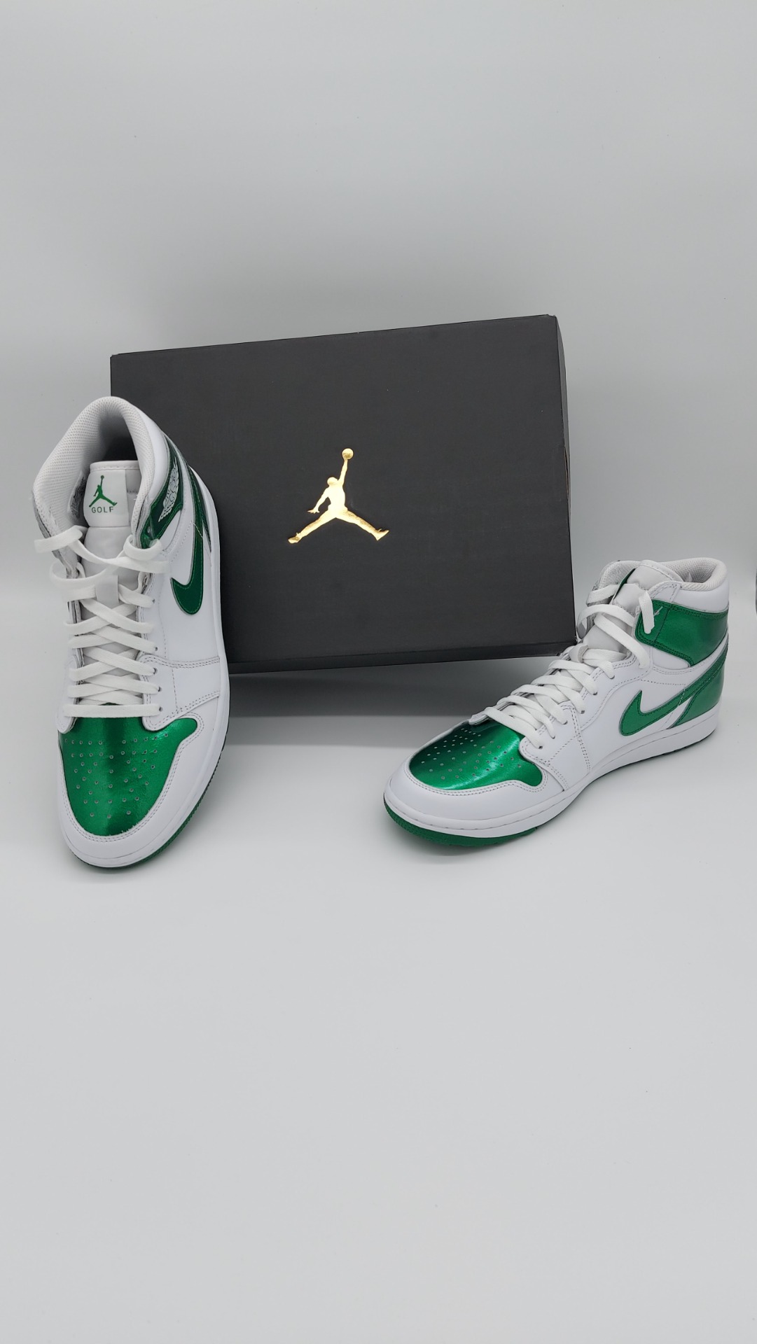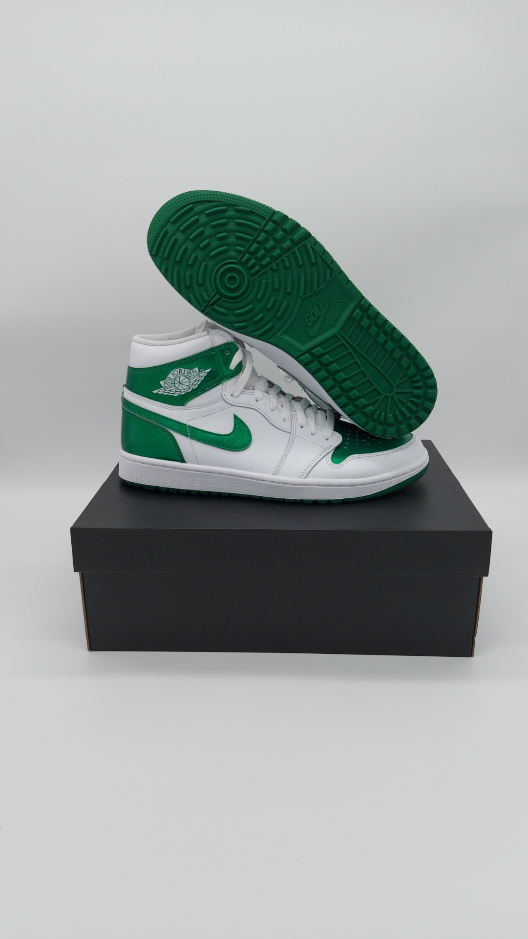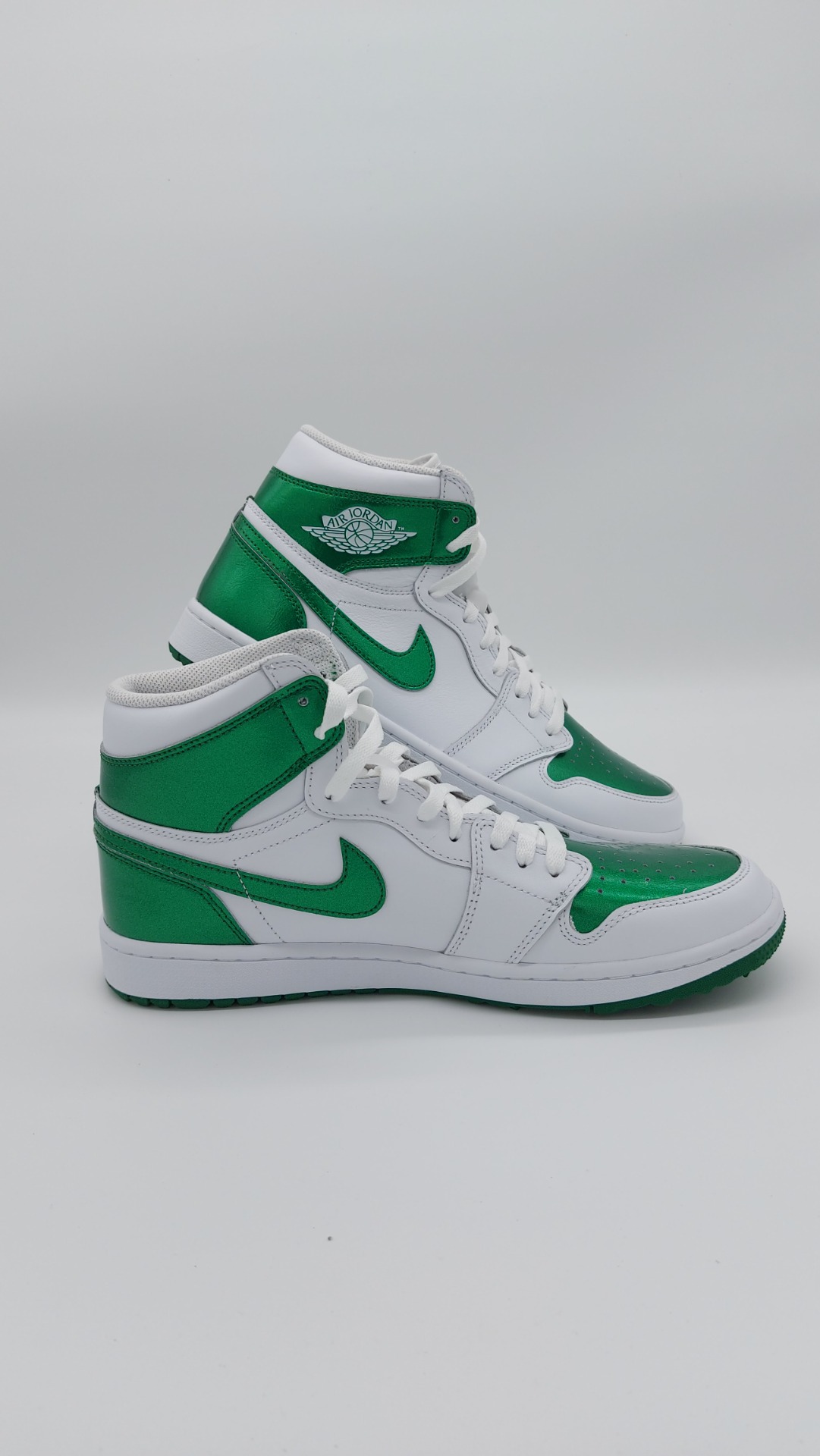 Fans van de Jordan 1 opgelet! De Jordan brand is weer met een schoen gekomen en wij hebben hem voor jullie! De Jordan 1 GOLF is een pracht exemplaar van wat een Jordan moet zijn. Met zijn robuuste bouw en sterke ondersteuning is deze schoen perfect voor het overnemen van de golfbaan. De schoen is opgebouwd met prachtige kleuren. Het mooie standaard witte met het prachtige gloeiende groen en het strak genaaide leer brengt deze schoen helemaal tot een.